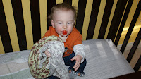 Wild hair!!! Clayton's hair is getting rather long these days, but we just can't bring ourselves to get it cut just yet! When he gets out of the bath, he has these little curls in the back that are beyond precious. This particular night, we decided to spike it up, and make it wild. It is sort of hard to see in the pictures, but the look on his face in the second picture is beyond priceless.